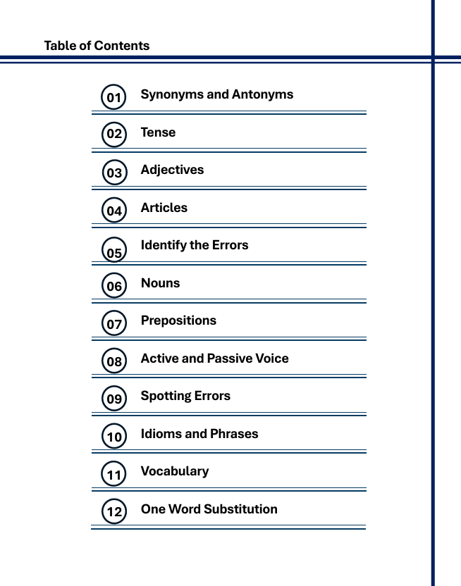 It covers English Grammar, Vocabulary and Error Detection in a simplified and exam-oriented format so that aspirants can improve accuracy and score maximum marks in English sections.