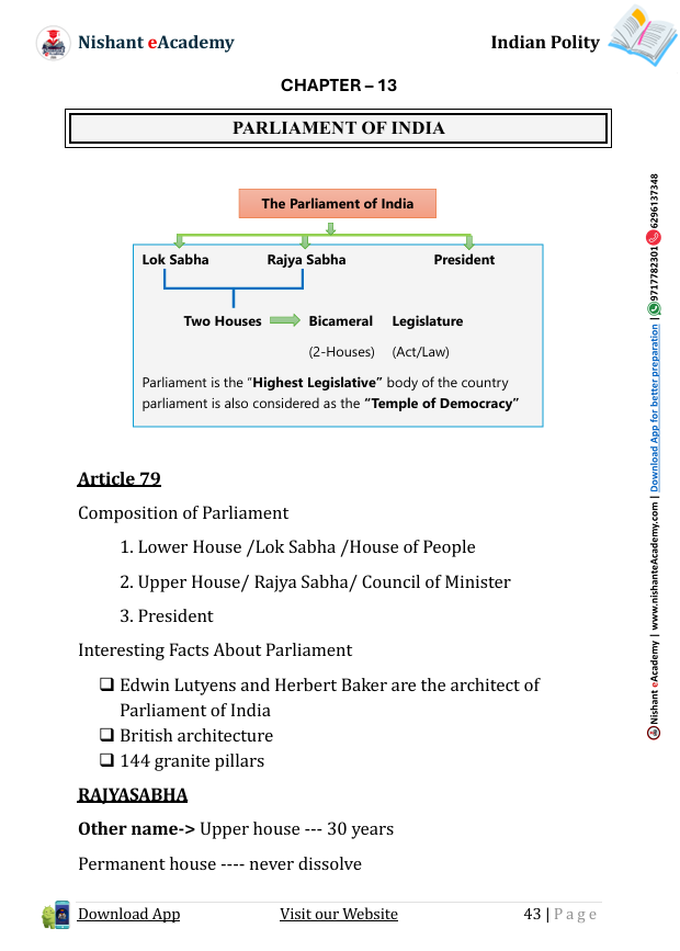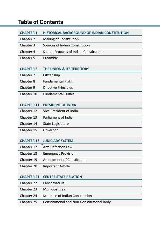 It covers Indian Constitution, Political System, Governance Structure and Important Articles in a simplified and exam-oriented format so that aspirants can understand concepts clearly and revise quickly before exams.
